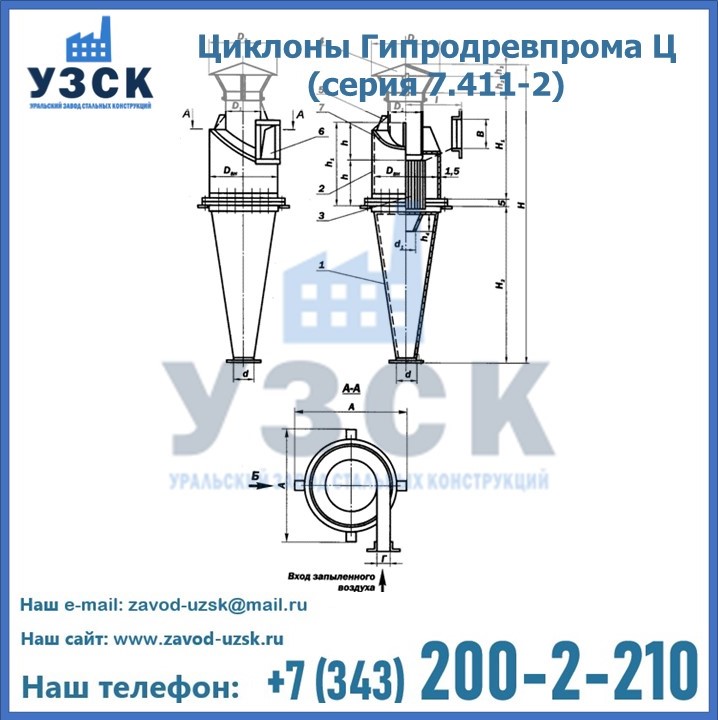 Циклоны Гипродревпрома Ц (серия 7.411-2) высокого качества можно купить в компании «УЗСК» в Долгопрудном. Наши специалисты предоставят всю необходимую информацию информацию и помогут с выбором модели циклона. Подробные технические характеристики, конструкцию, параметры, ассортимент и стоимость продукции можно также найти на сайте УЗСК.