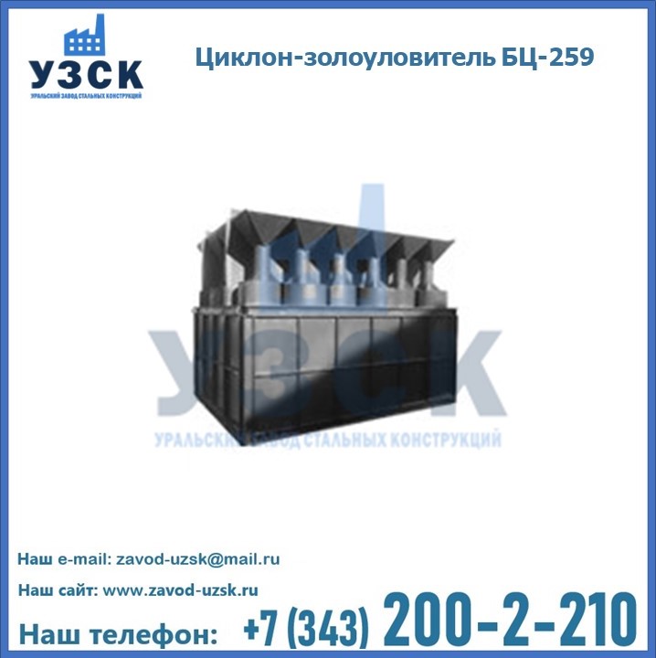 Если вы планируете купить то или иное оборудование, например, циклоны-золоуловители БЦ-259, то рекомендуем заказать данный товар на сайте УЗСК. Мы производим и реализуем продукцию высокого качества по приемлемой цене. Эксперты Уральского Завода Стальных Конструкций в Долгопрудном проконсультируют вас по всем вопросам, помогут сделать выбор и оформить заказ без лишних временных затрат. Мы гарантируем соответствие нашей продукции всем требованиям ГОСТ и ТУ, а также износостойкость и высокую производительность предлагаемого оборудования. Если требуется изготовить циклон нестандартных размеров, то такой вариант выполнения заказа тоже предусмотрен, так как предприятие имеет собственные производственные площади и надежных поставщиков. На все поставляемое или производимое оборудование имеются чертежи и прочая техническая документация. Заказать и купить циклоны или прочее оборудование высокого качества и по доступной цене можно через наш сайт или по указанному в разделе «Контакты» телефону.