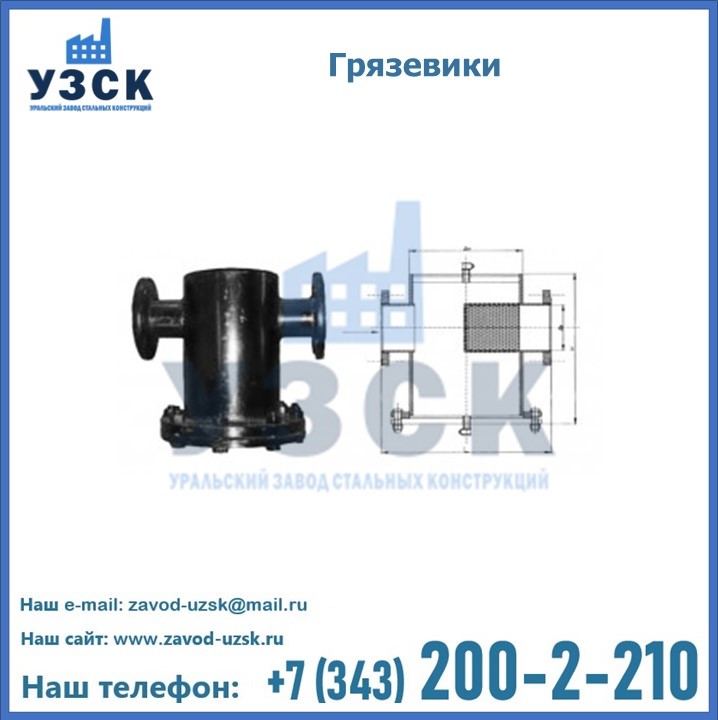Уральский Завод Стальных Конструкций занимается производством и реализацией грязевиков в городе Долгопрудный, в наличии устройства горизонтального и вертикального типа, соответствующие всем требованиям и стандартам, в том числе условиям «Правил устройства и безопасной эксплуатации».