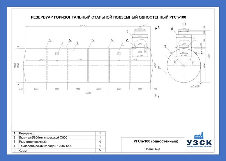 РГСн-100: горизонтальный резервуар одностенный наземного расположения;